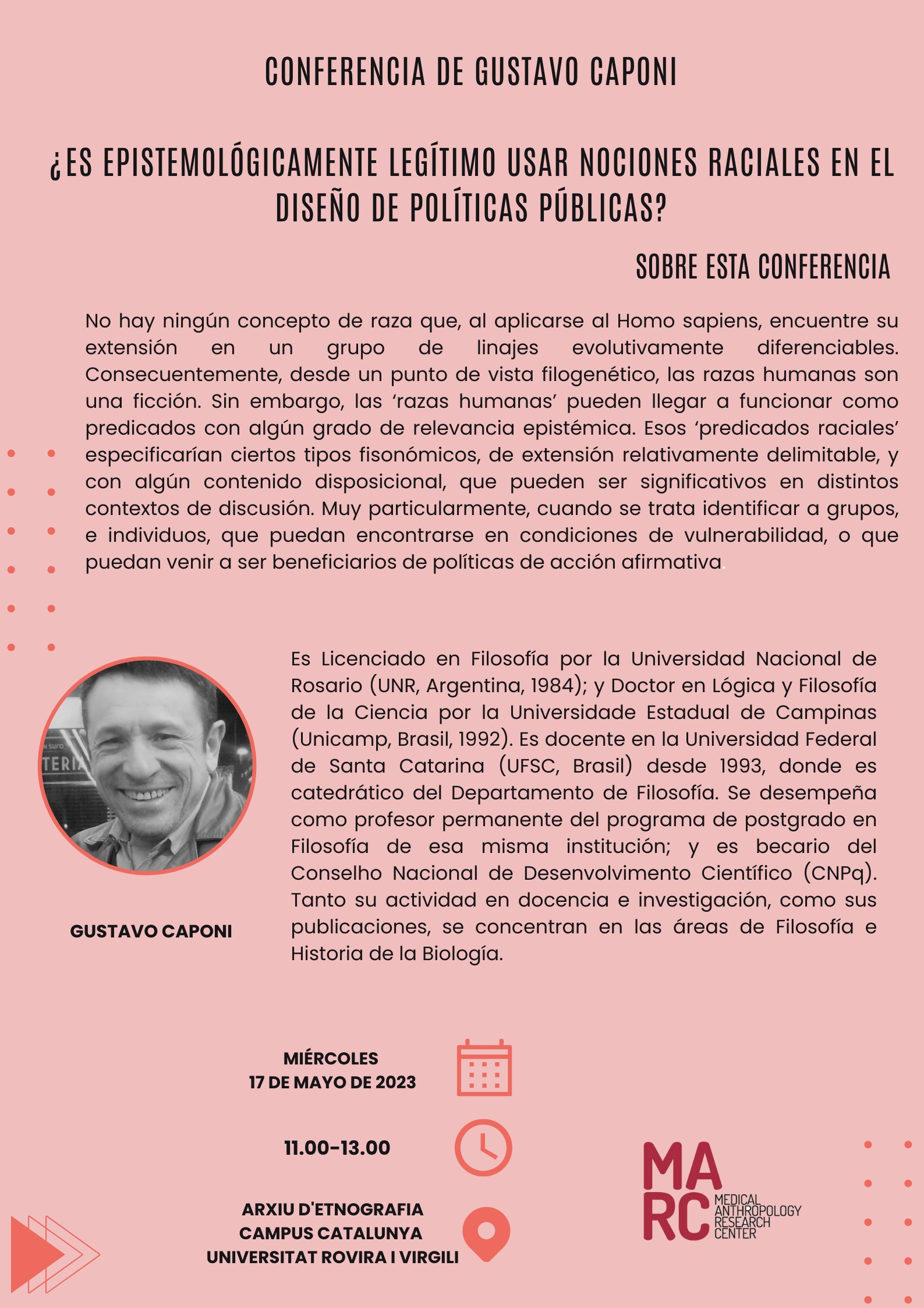 Conferència «¿Es espistemológicamente legítimo usar nociones raciales en el diseño de políticas públicas?» a càrrec de Gustavo Caponi (Universidade Federal de Santa Catarina, Brasil)