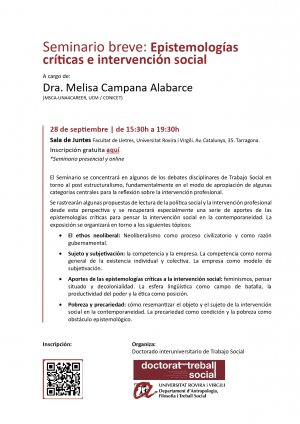 Organitza: Doctorado Interuniversitario de Trabajo Social i el Departament d'Antropologia, Filosofia i Treball Social de la URV.