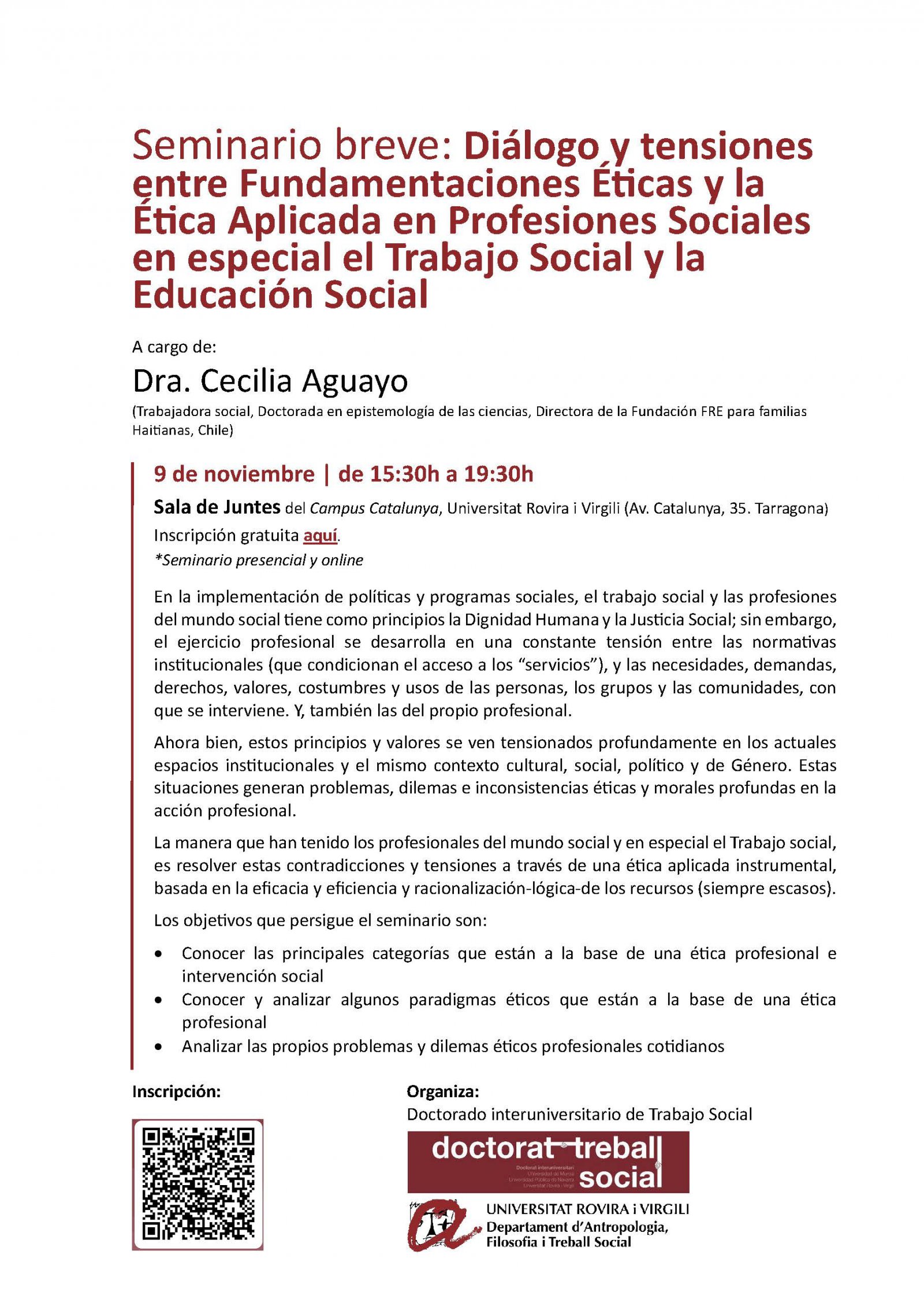 Seminario breve: Diálogo y tensiones entre Fundamentaciones Éticas y la Ética Aplicada en Profesiones Sociales en especial el Trabajo Social y la Educación Social