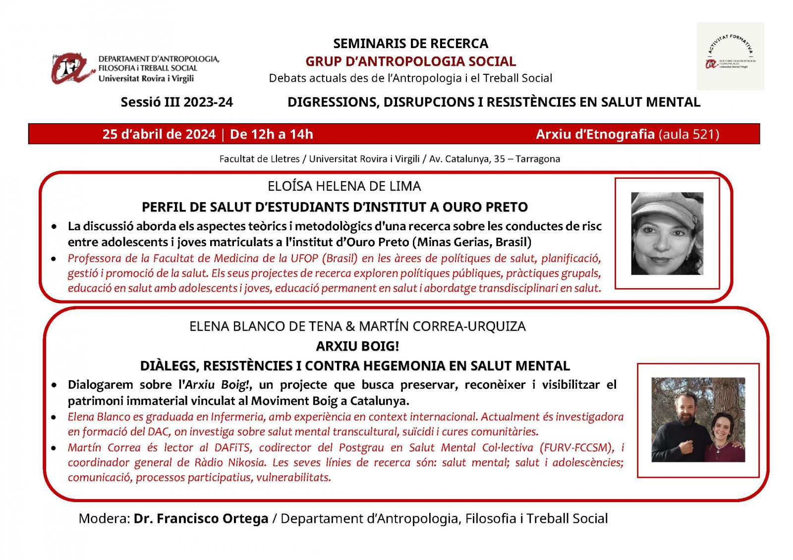 Modera: Dr. Francisco Ortega / Departament d'Antropologia, Filosofia i Treball Social