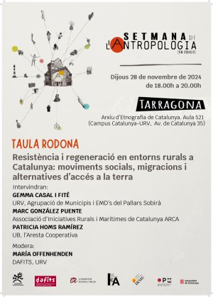 En aquesta taula rodona es proposa debatre sobre les capacitats de regeneració i resistència de les comunitats rurals de Catalunya davant dels reptes socials, econòmics i culturals actuals. D'una banda, es convida a reflexionar sobre l'activisme polític de grups laborals i sindicals que, en col·laboració amb els moviments socials, lluiten per garantir els drets de les persones que treballen en les campanyes agràries, especialment persones migrades. D'altra banda, es planteja analitzar propostes alternatives d'accés a la terra i iniciatives que impulsen la sostenibilitat i la transformació social en clau agroecològica, com la creació de xarxes de pagesos i projectes que, des del cooperativisme, la perspectiva feminista i la justícia mediambiental, s'enfoquen en la sobirania alimentària i l'economia social i solidària.